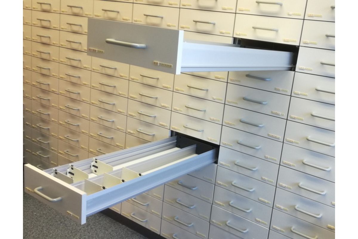 W pionie jest około 15-17 szuflad na łożyskach, szuflada wyposażona jest w przegrody i boczne opisy. Szuflady wystąpuja w głbokościach 0d 100-120cm oraz szerokości od 39, 5 do 42, 5cm.